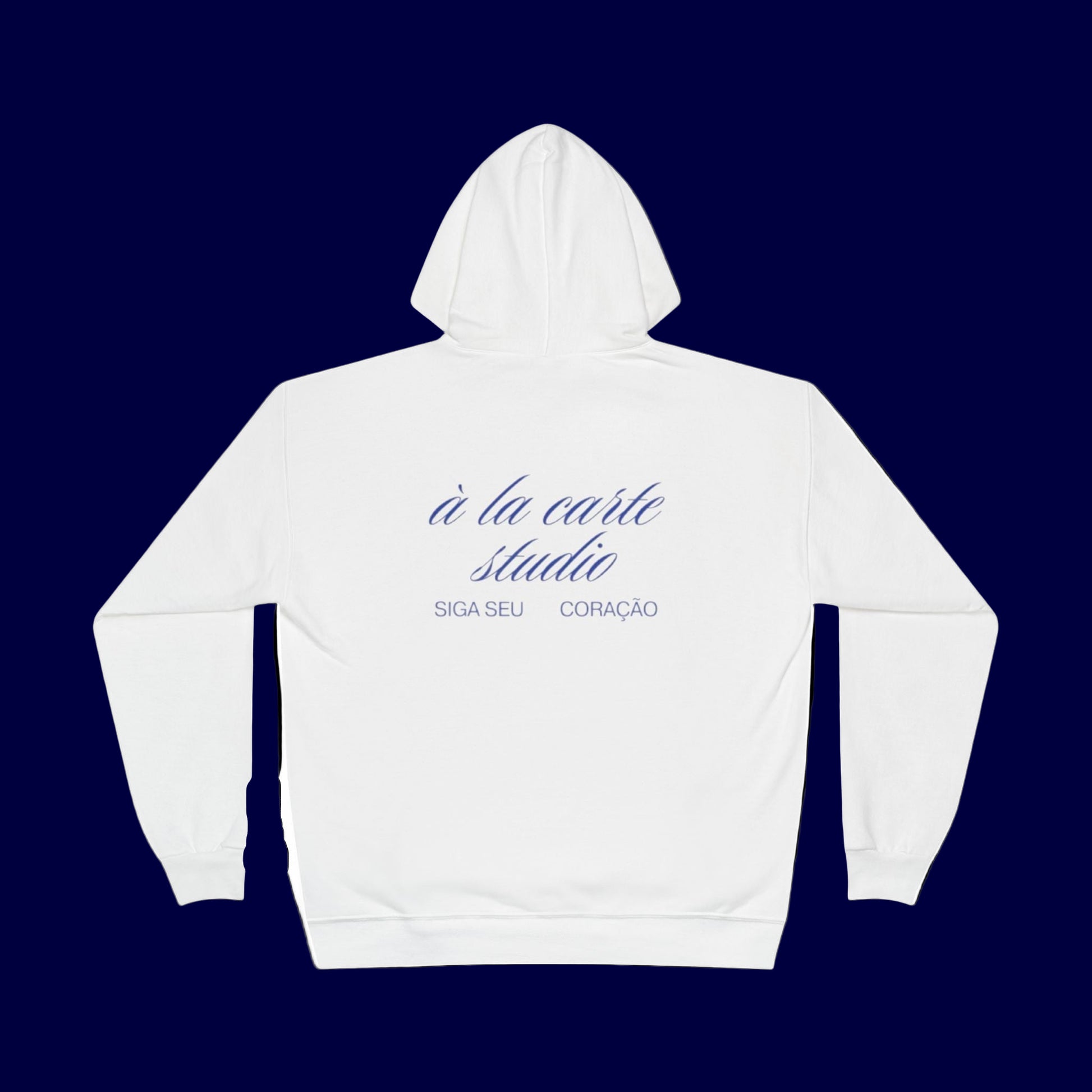 À La Carte Studio White Hoodie – "Siga Seu Coração"
